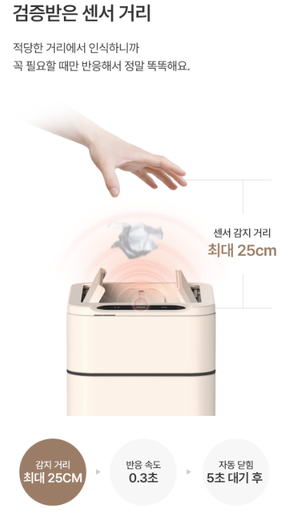쓰레기통의 문이 자동으로 열리게 됩니다.